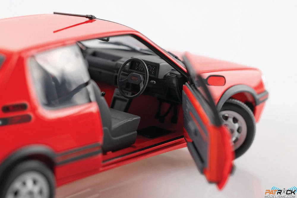 La 205 est une petite voiture produite de 1983 à fin 1998 par le constructeur automobile français Peugeot. Son développement a commencé en 1978. La sportive 205 GTI suivit en 1984. En 1986, la GTI développait 128 ch (94 kW) avec sa cylindrée de 1,9 litre et atteignait une vitesse de pointe d‘environ 200 km/h avec un poids léger de 921 kilos. Le département de style de Peugeot, La Garenne, dirigé par Gérard Welter, était responsable du design. Arrivée sur le marché en 1984 pour concurrencer la Golf GTI, la petite voiture sportive est devenue un objet de désir pour bien plus que toute une génération de jeunes Français. La sobriété était encore un mot étranger au sens propre du terme dans les années 80, avec des jantes en aluminium plus grandes et des évasements d‘ailes terminés par des bandes décoratives rouges, la 205 GTI, disponible en modèle deux portes, se démarquait visuellement des autres Peugeot 205. Après qu‘une Peugeot 205 Turbo 16 a remporté le Championnat du monde des rallyes en 1985, la 205 GTI incarna la mode par excellence.
