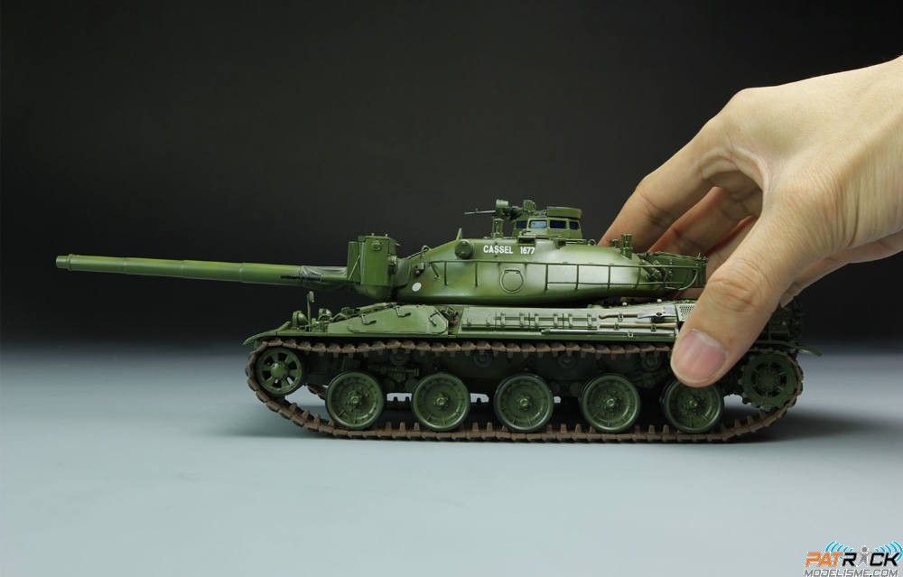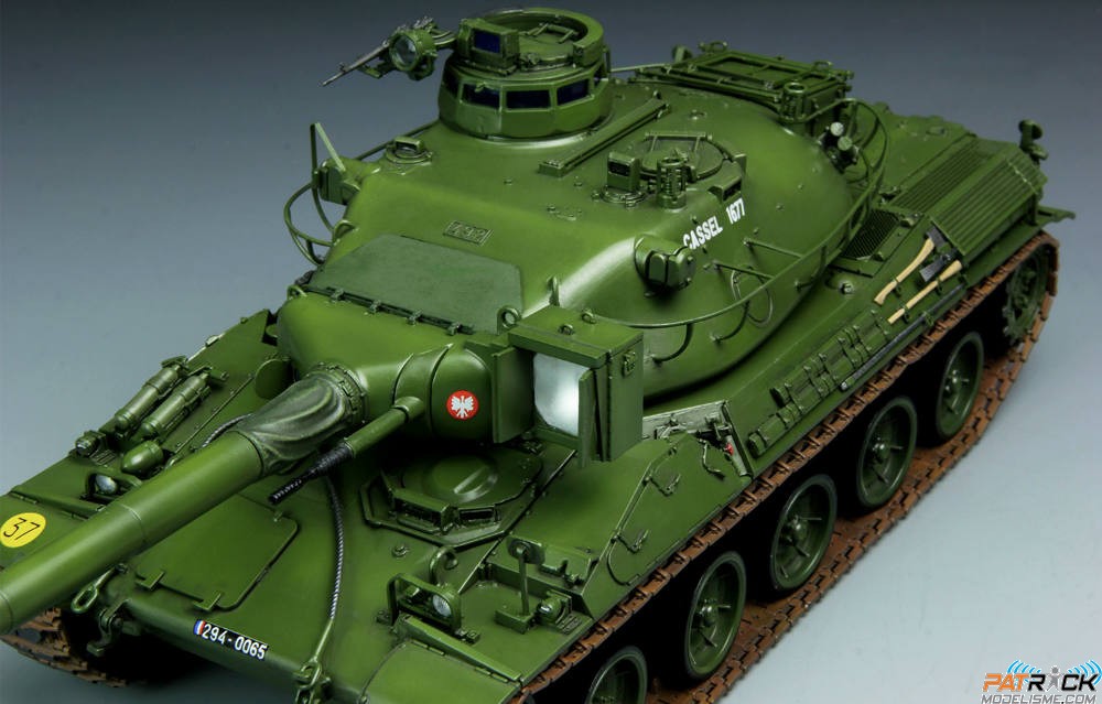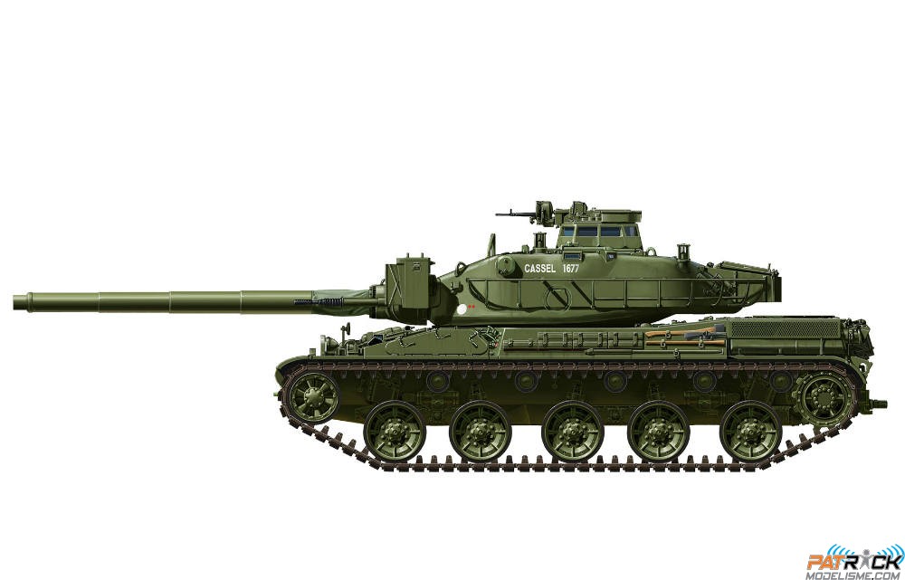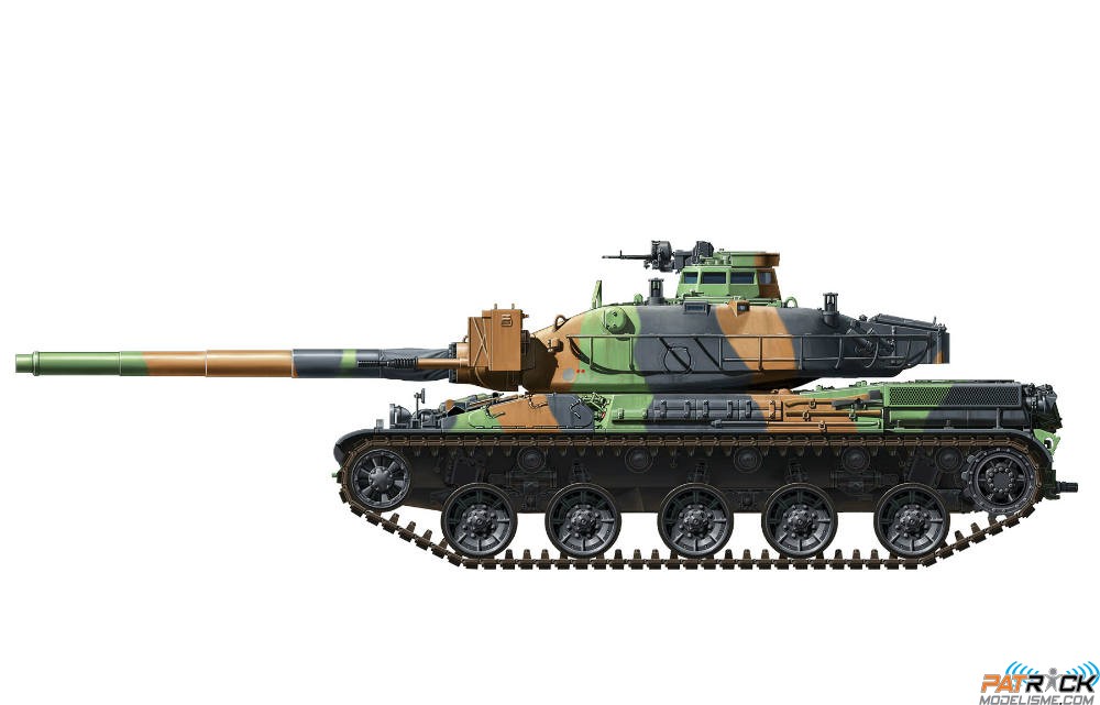 Maquette plastique du char de combat principal français AMX-30B à l'échelle 1/35. Longueur totale : 271 mm et largeur : 89 mm. La forme de la tourelle moulée est reproduite de manière réaliste ; le canon et le canon automatique de 20 mm sont indépendants ; la trappe de la tourelle de commandement pivote à 360 degrés ; les pièces du train de roulement réalistes du châssis sont mobiles ; la structure à barre de torsion élastique, combinée à des amortisseurs hydrauliques mobiles, assure un amortissement comparable à celui d'un véhicule réel ; les chenilles sont faciles à assembler. Deux options de peinture sont proposées.
