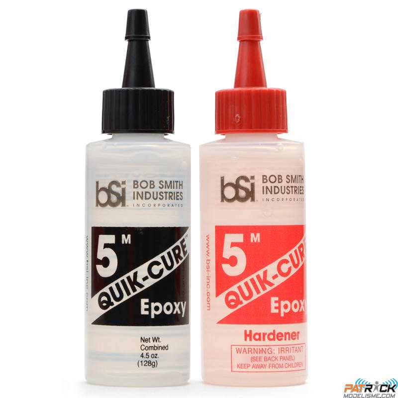 QUIK-CURE™ adhère mieux aux surfaces propres et texturées. Les surfaces lisses et non poreuses doivent être rendues rugueuses à l'aide d'un papier de verre grossier pour améliorer l'adhérence. L'acétone et l'alcool à friction isopropylique sont les meilleurs solvants pour nettoyer l'époxy non durci des surfaces. Le manque de fragilité de QUIK-CURE'S™ lui permet de former des liaisons durables sur des matériaux aussi différents que le balsa et le verre ; cependant, il n'est pas recommandé pour les zones soumises à une immersion prolongée dans l'eau. QUIK-CURE™ durci peut être enduit de résine polyester sans affecter le durcissement de la résine. Durcissement complet en moins de 15 minutes.