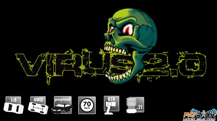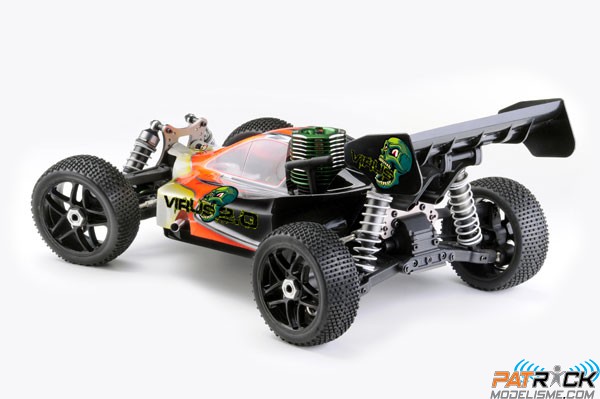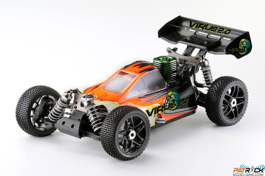 Modèle livré ici en version prêt à rouler avec moteur 3,5cc et nouvelle radiocommande 2.4GHZ W5 . La VIRUS 2 n'est pas seulement une voiture prête à rouler comme les autres car elle est équipée des dernières innovations techniques et technologiques, des meilleurs matériaux disponibles en matière de voitures R/C. Les simples sauts ne suffisent pas à la contenter, elle réclame des sauts dignes des monsters trucks et le plaisir est non stop sur la piste ! Le moteur de 3,5cc (ARE-21) et le résonateur en aluminium lui donne la pleine puissance en permanence sur la piste. Le châssis offre de multiples options d'ajustements et de réglages, le frein professionnel garantit une décélération parfaite avant les virages, la boite de protection pour le récepteur prémunit contre les intempéries, un puissant servo de direction installé à l'horizontal permet des virages directs, et la nouvelle radiocommande 2 voies W5 à volant livrée avec son récepteur et ses 2 servos est déjà installée (avec inversion du sens de rotation des servos, trims, réglage de la course du servo de direction). Le design ergonomique et l'accroche du volant de direction procurent un pilotage extrêmement précis et sensible.