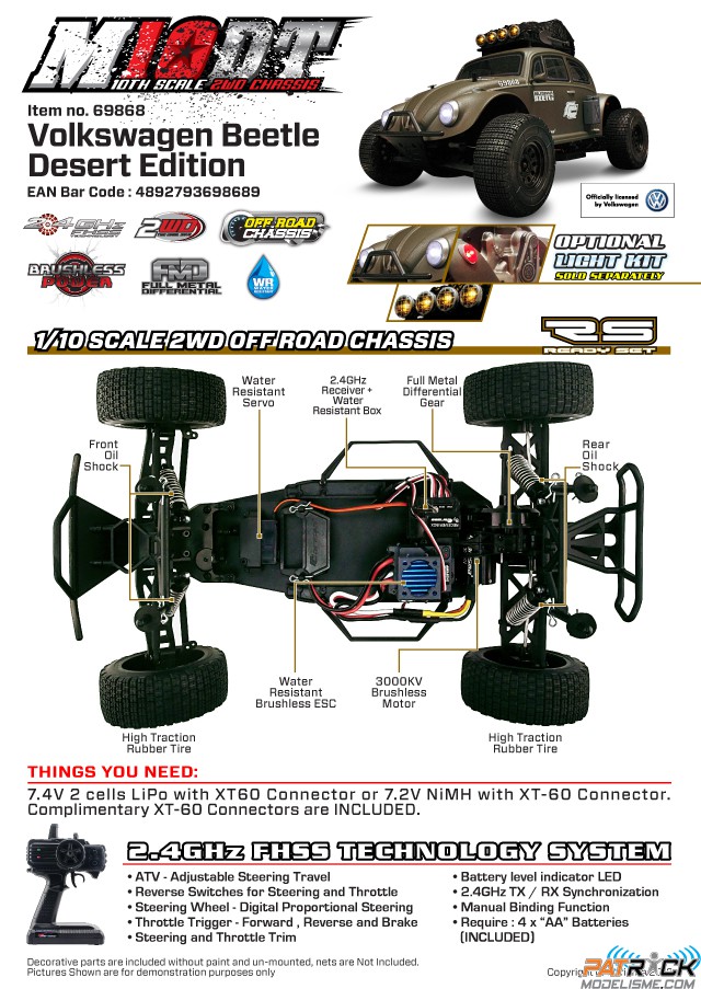 La MD-10T est livrée d'usine montée avec une magnifique carrosserie VW Cox peinte et décorée.