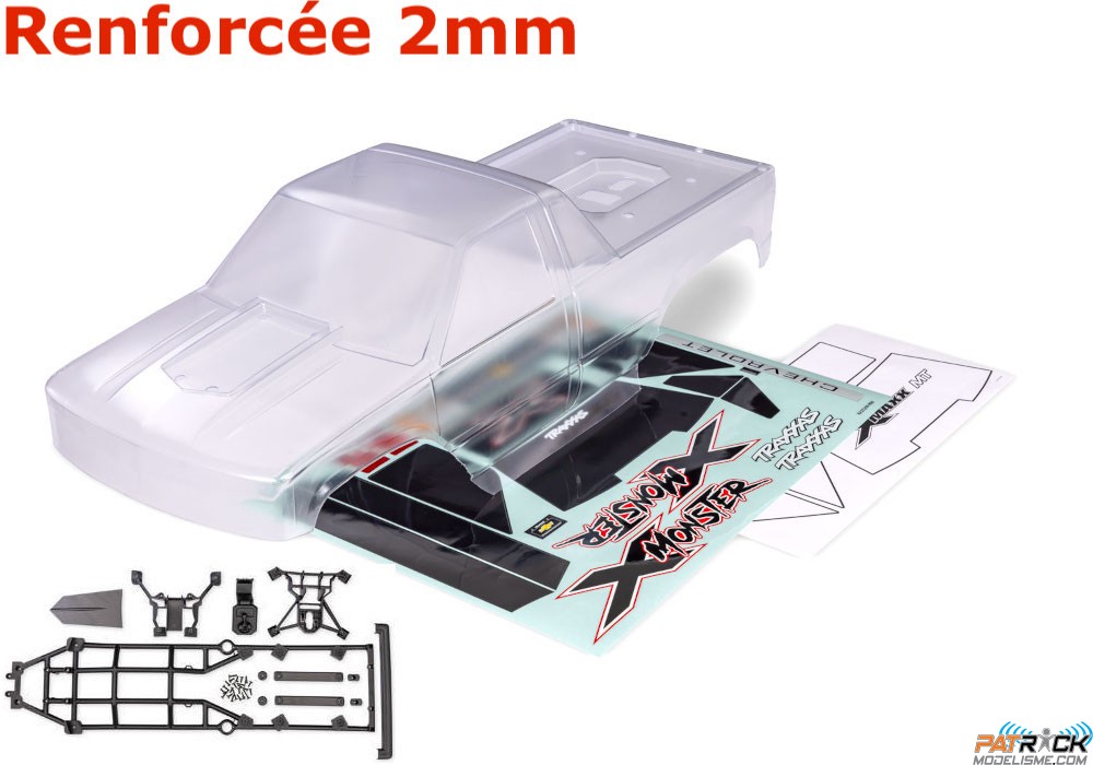 Il est temps de remplacer la carrosserie de votre Truck X-maxx ou X-Monster ou de lui donner un nouveau look ? Cette carrosserie "Heavy duty" Chevrolet GMT400 CK sous licence est livrée transparente et à peindre avec des autocollants a appliqués soi même. Elle est livré complète et prête à être montée. Elle comprend une cage intérieure, des loquets de carrosserie automatiques, des renforts de carrosserie et le matériel de montage.