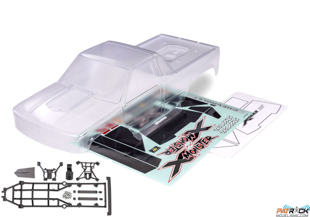 Il est temps de remplacer la carrosserie de votre Truck X-maxx ou X-Monster ou de lui donner un nouveau look ? Cette carrosserie Chevrolet GMT400 CK sous licence est livrée transparente et à peindre avec des autocollants a appliqués soi même. Elle est livré complète et prête à être montée. Elle comprend une cage intérieure, des loquets de carrosserie automatiques, des renforts de carrosserie et le matériel de montage.