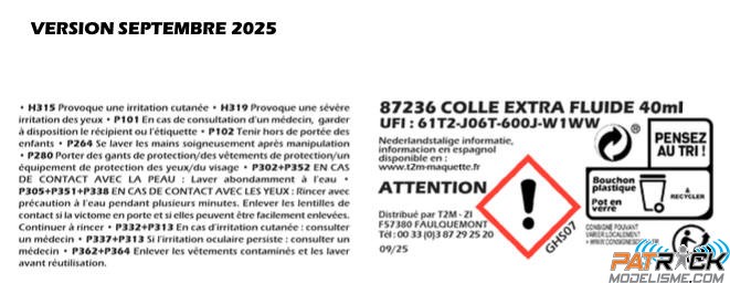 Formule EXTRA FLUIDE pour coller ensemble des maquettes en plastique qui utilisent du plastique polystyrène.