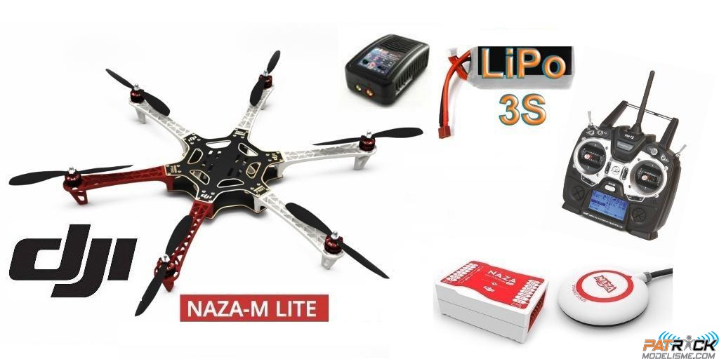 - ∆ DJI F550 E300 COMBO LITE - NAZA-M LITE+GPS, Radio Graupner MZ12, Lipo 4200 3s, Chargeur rapide, Train