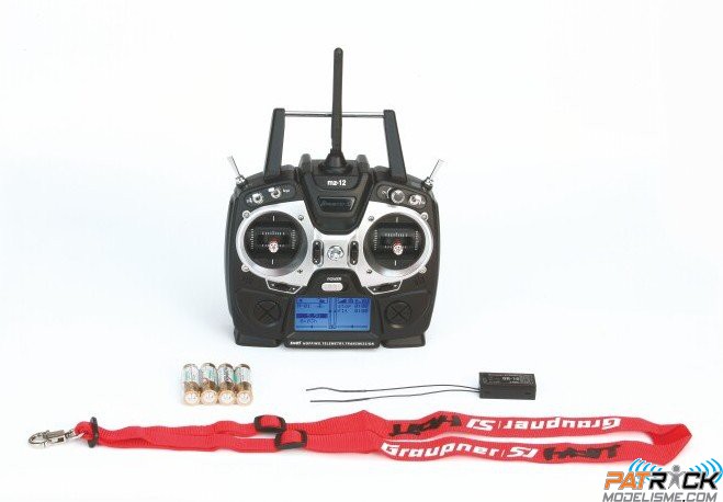 Emetteur MZ-12 HoTT , Récepteur GR-16 HoTT, (4 piles alkaline avec support inclus), sangle d’émetteur.