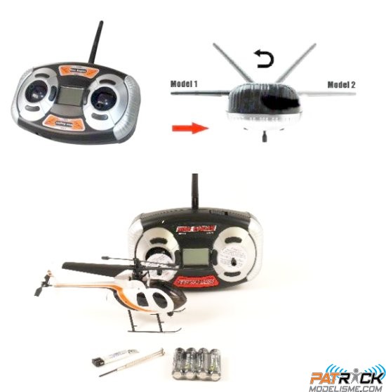 - Emetteur 4 voies 2.4Ghz (Mode 1 / 2 réglable) avec Chargeur Lipo intégré