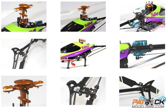 - Modèle très stable grâce à sa tête de rotor principal tout en métal et au système "Flybarless"(sans barre de Bell).
