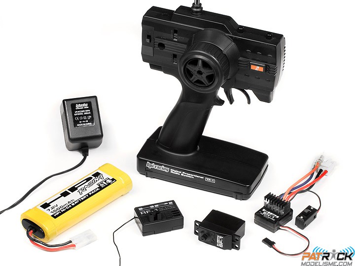 La radiocommande est en version AM et dirigée par un émetteur à volant aussi performant que les modèles haut de gamme. Le variateur de vitesse (marche avant/arrière) est inclus ainsi qu'une batterie 7.2V et son chargeur 220V. Le moteur lui est un Saturn 27T.
