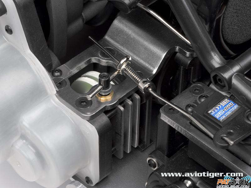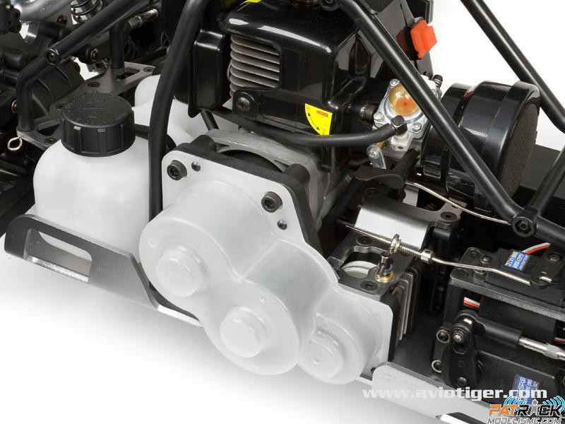 Pour contrer le poids important de cette auto, le concepteur à préféré viser très haut d'entrée de jeu en installant sur la plateforme un carter de 30 cm3. Ce moteur est équipé d'un pot d'échappement du style " gamelle " et d'un filtre à air en mousse. Il dispose par ailleurs d'un carburateur à trois vis de réglage, dont celle du ralenti, celle du bas régime et celle du haut régime.