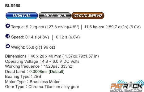 Le BLS-950 est un servo digital très haut de gamme pour les plateau cyclique des classes 600 et 700 (.50 - .90) utilisés en 3D extreme.