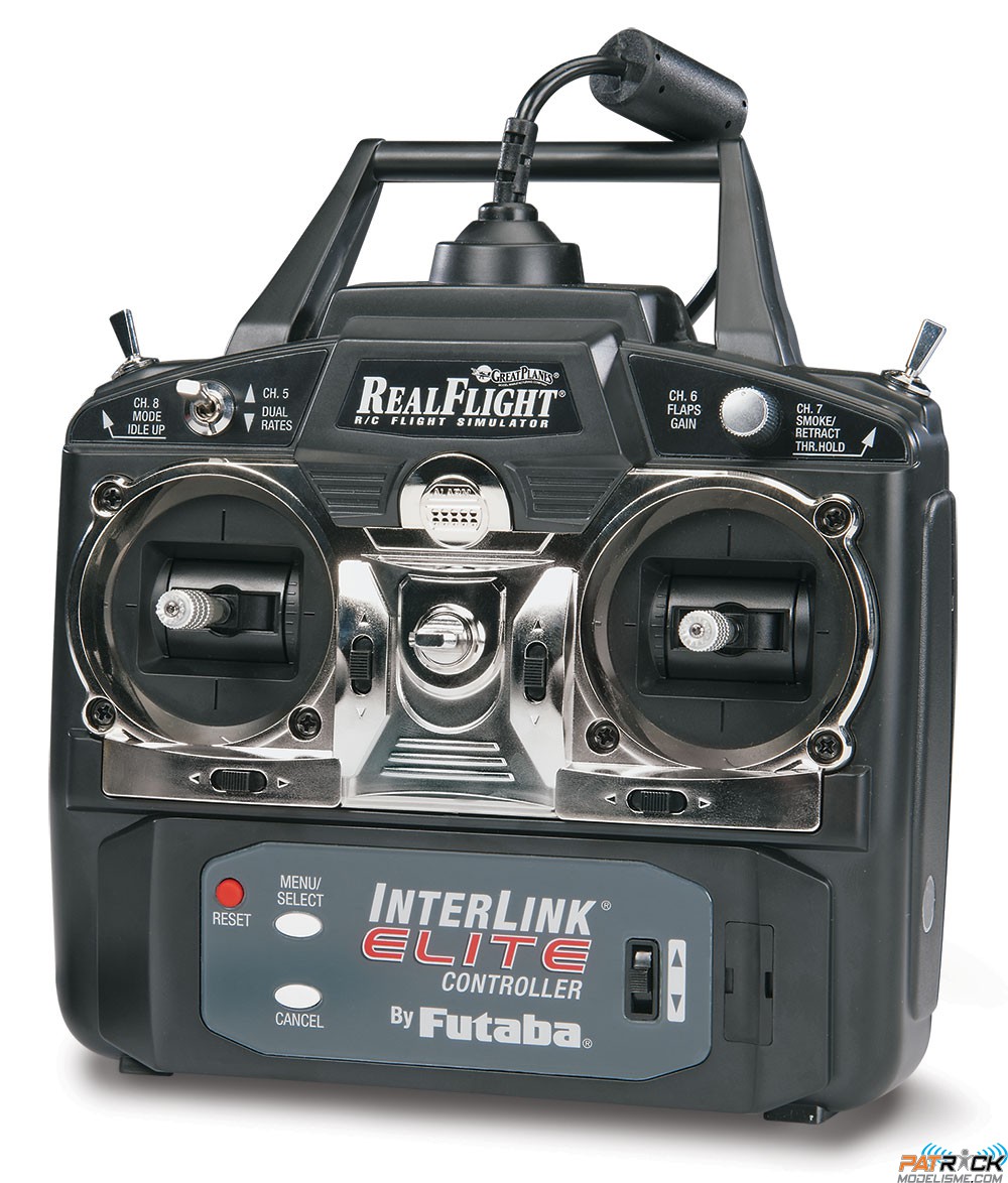 Pack Real Flight Drone édition , livré avec émetteur factice Interlink Elite 8 voies. Boitier fabriqué par Futaba, d’une grande précision avec contrôle du logiciel intégré.