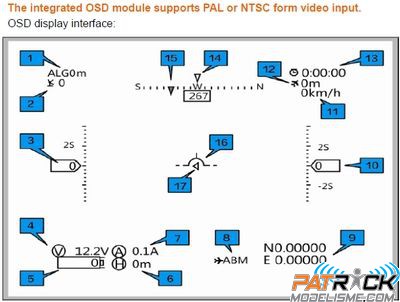 Le module OSD du FY-41AP Lite permet d'incruster dans votre retour vidéo de nombreuses informations recueillies à bord de votre avion ou de votre aile volante comme l'altitude, la vitesse, la direction, une flèche vers le lieu de décollage ...