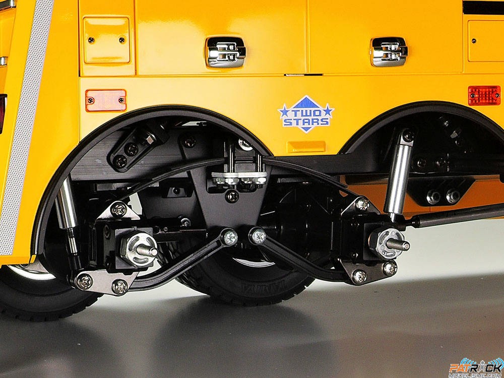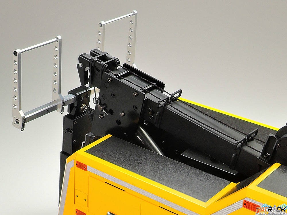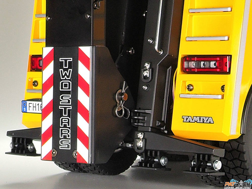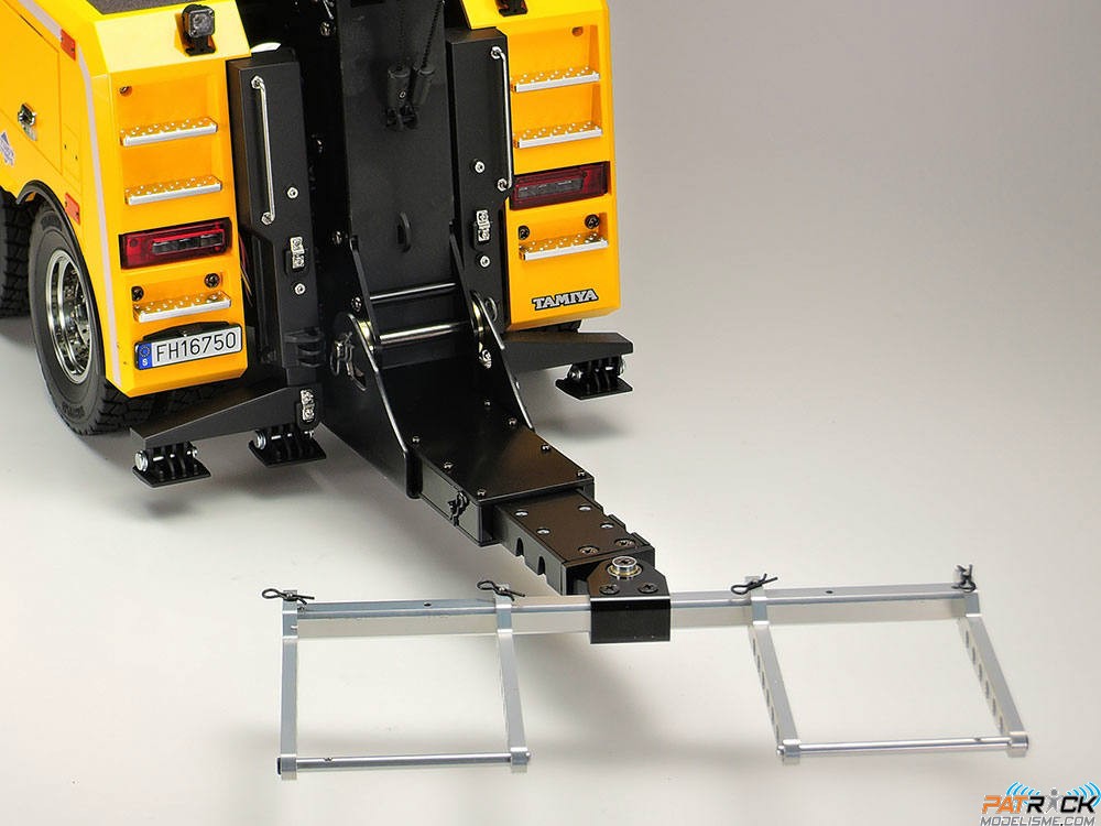 - Comprend une représentation détaillée de la cabine en plastique moulé, avec une calandre avant et des détails intérieurs photogravés. - Les essieux avant de ce modèle sont équipés du premier système de double direction de la gamme de camions Tamiya au 1/14.