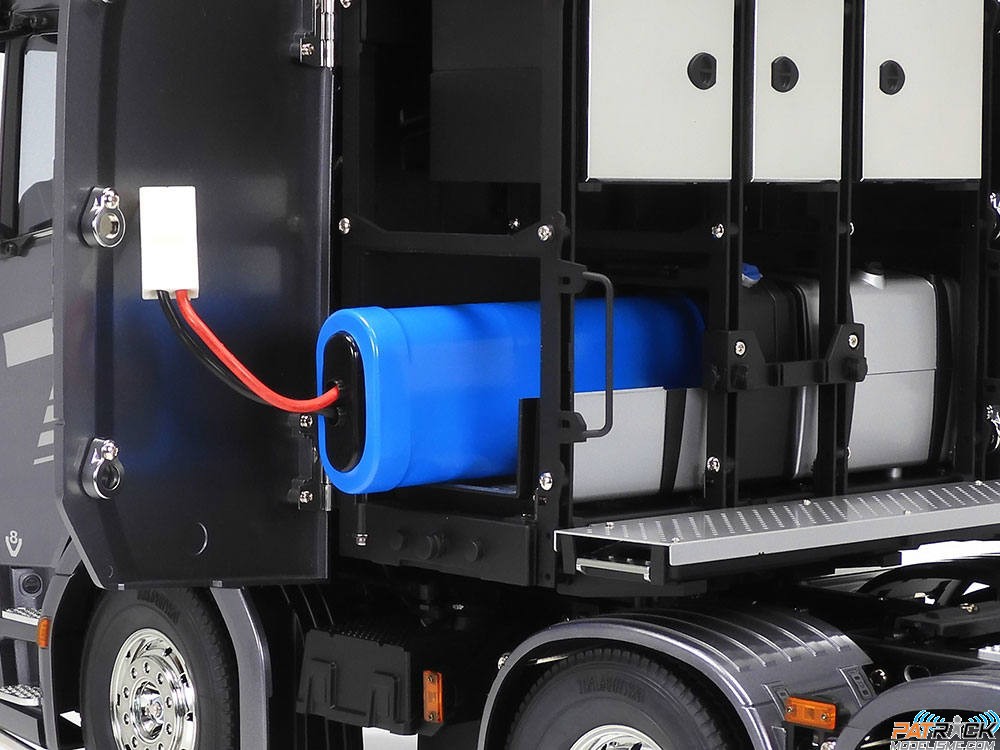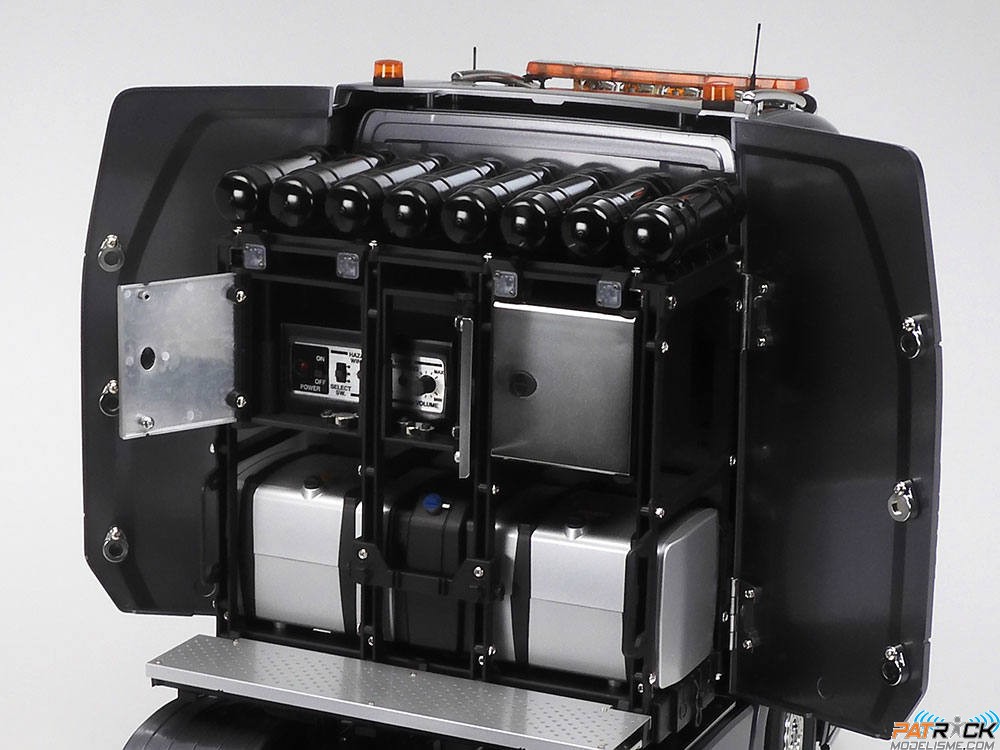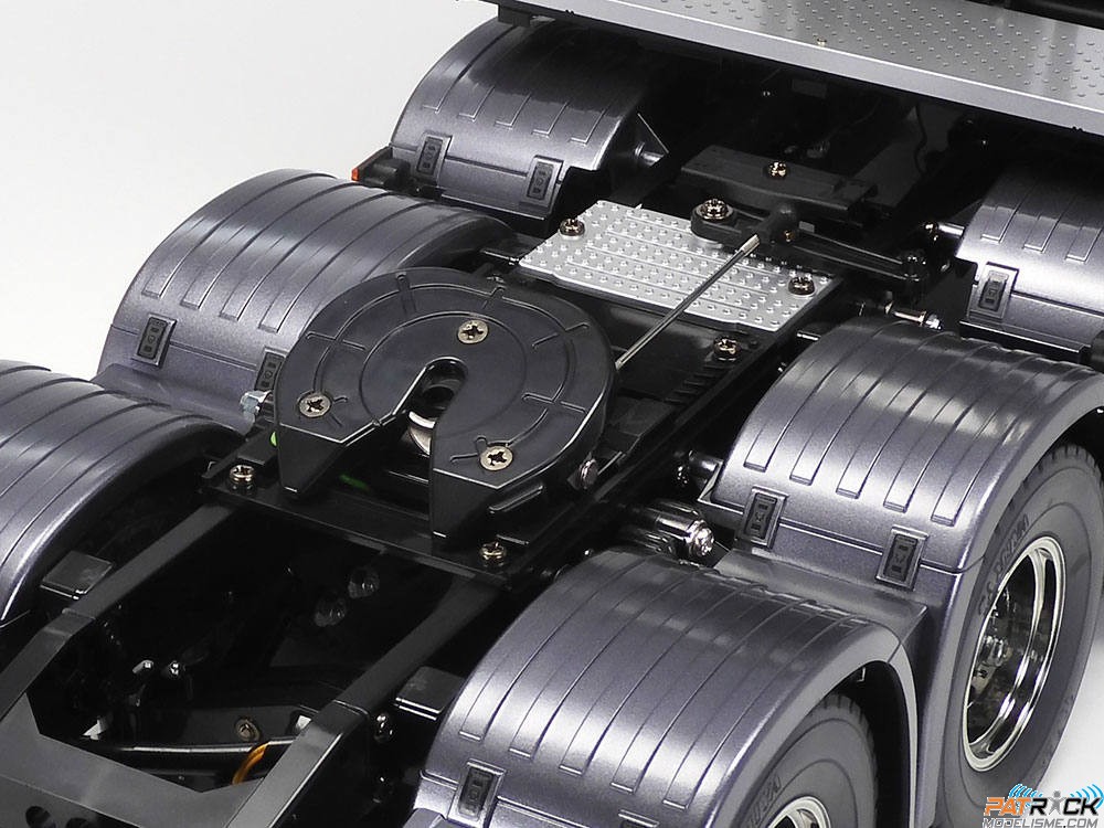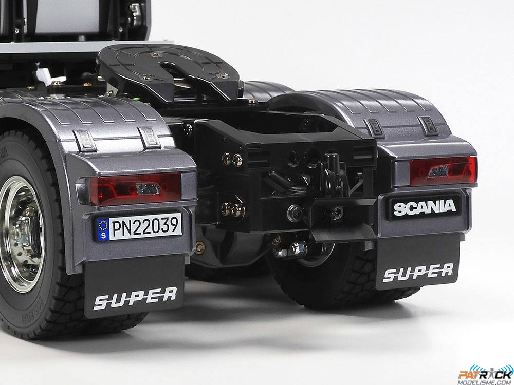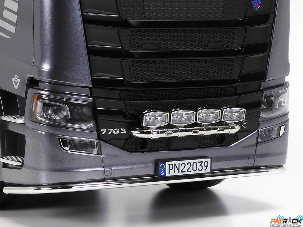 - Ce modèle reproduit fidèlement le Scania 770 S 8x4/4, doté d'un châssis composé de nombreuses pièces métalliques.